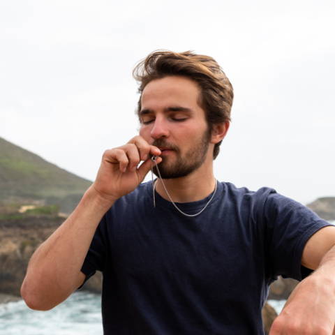 Think of your inhalations as the gas pedal and your exhalations as the brakes/ Stress triggers short inhales which launches you into “fight or flight” mode. With 50,000 thoughts and 150 phone notifications everyday, we enter this state of mind too often which makes us feel tired and tense. Extending your exhales immediately reverses this state within two minutes by lowering cortisol (stress hormone), blood pressure, and heart rate. We used this proven science to engineer a tool that allows you to access these longer exhales more often which makes you breathe better as a habit.